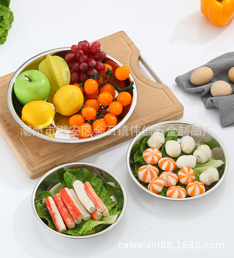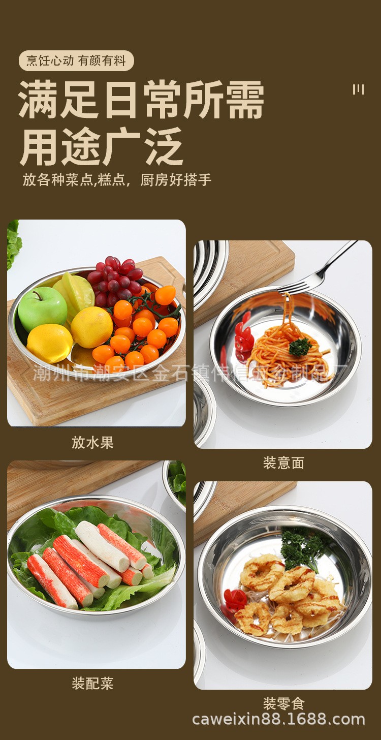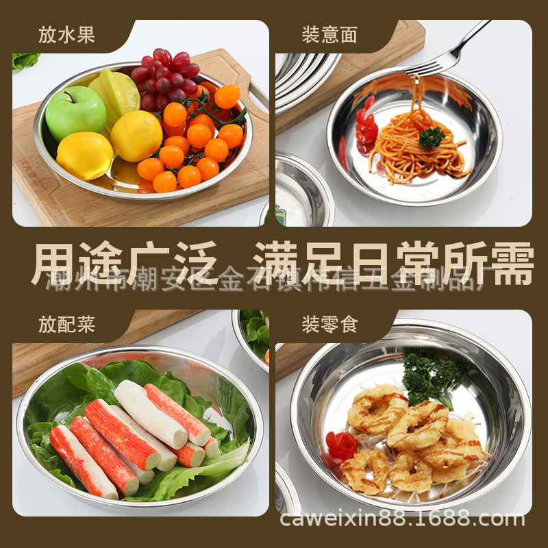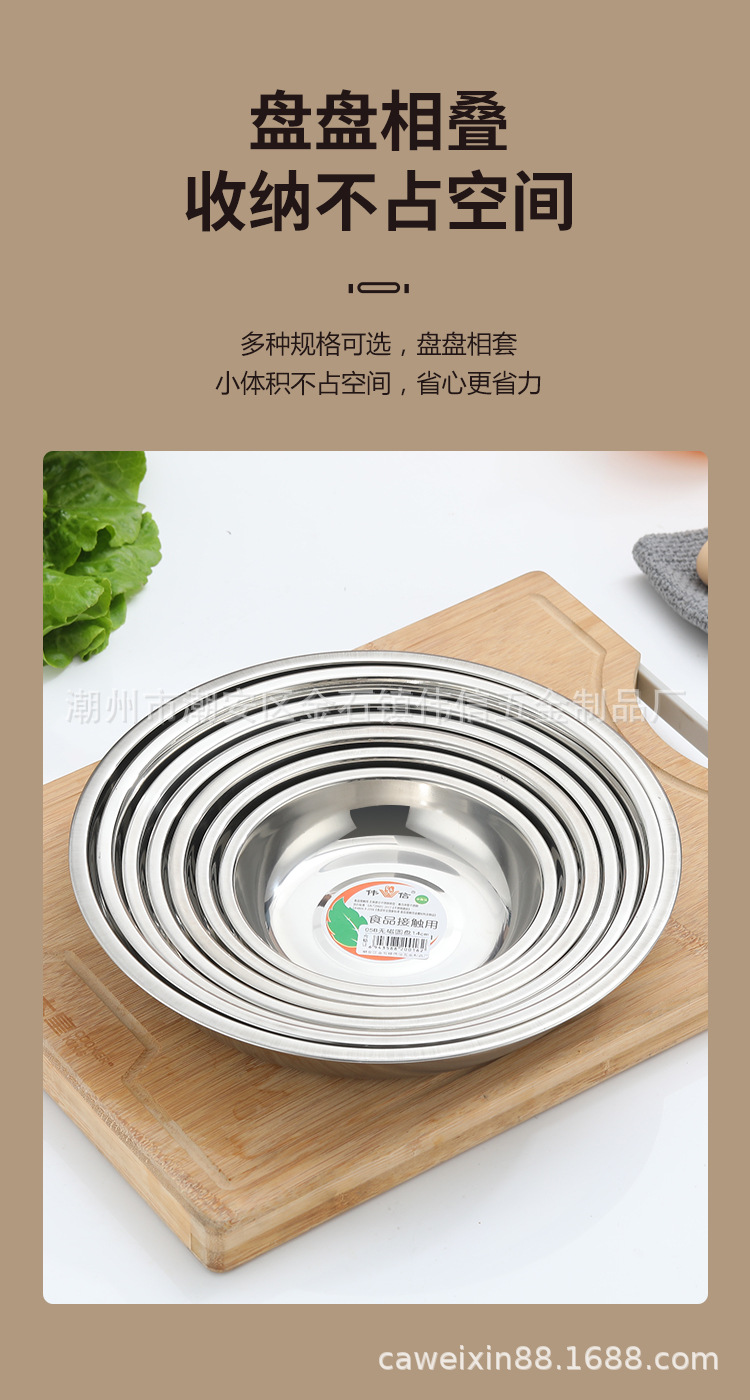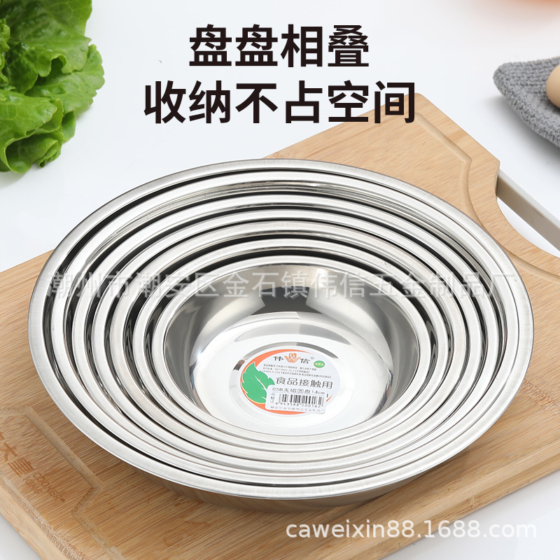 首页 >> 产品中心 >>圆盘系列 >> 厂家批发无磁不锈钢糕盘 蛋糕盘 圆盘 汤盘 端菜盘 14CM-26CM